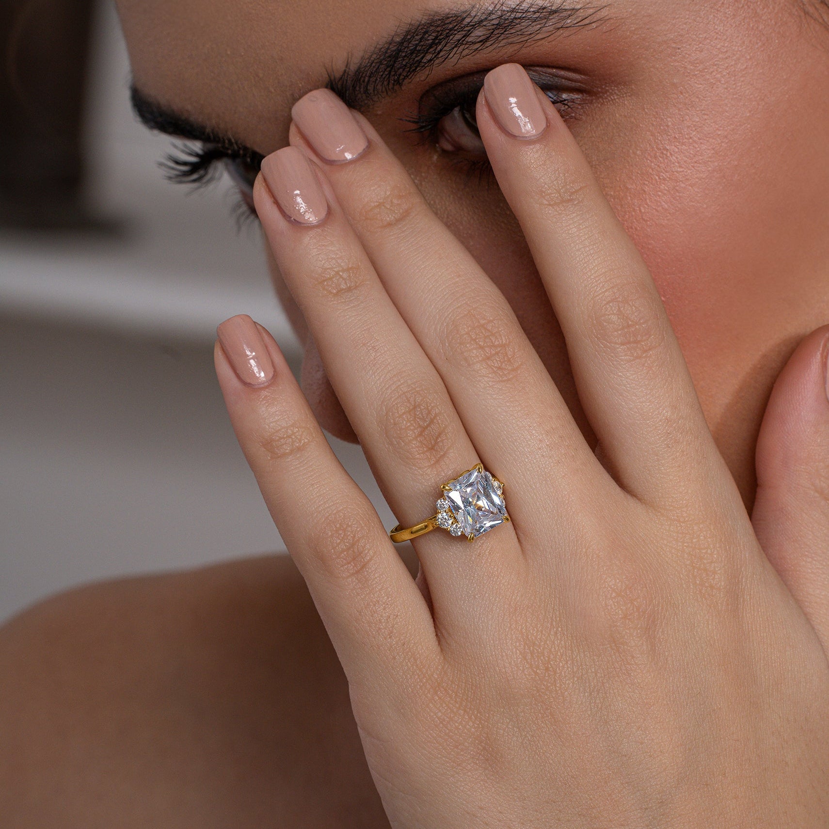 Radiant Cut Side Cluster Ring